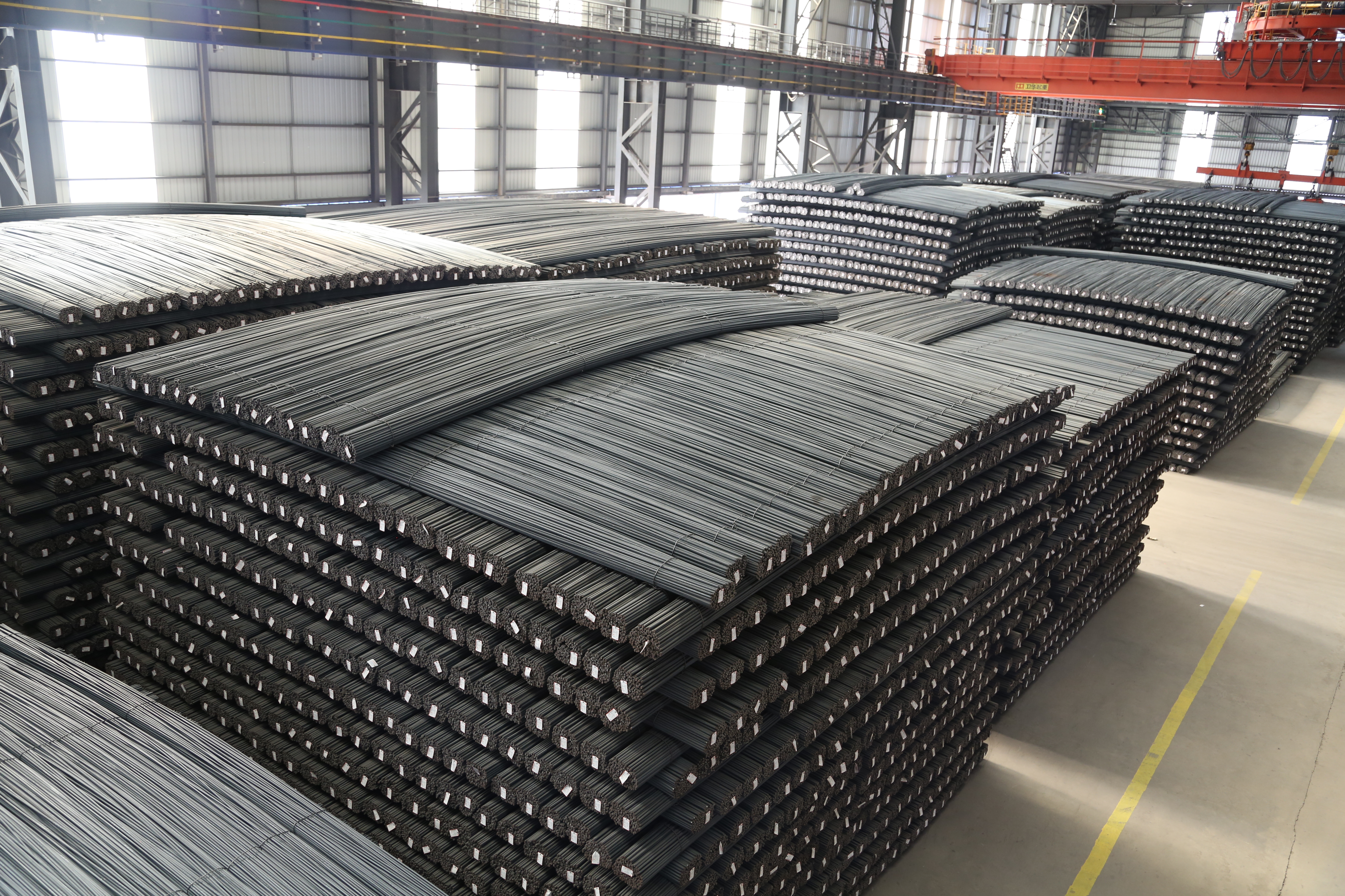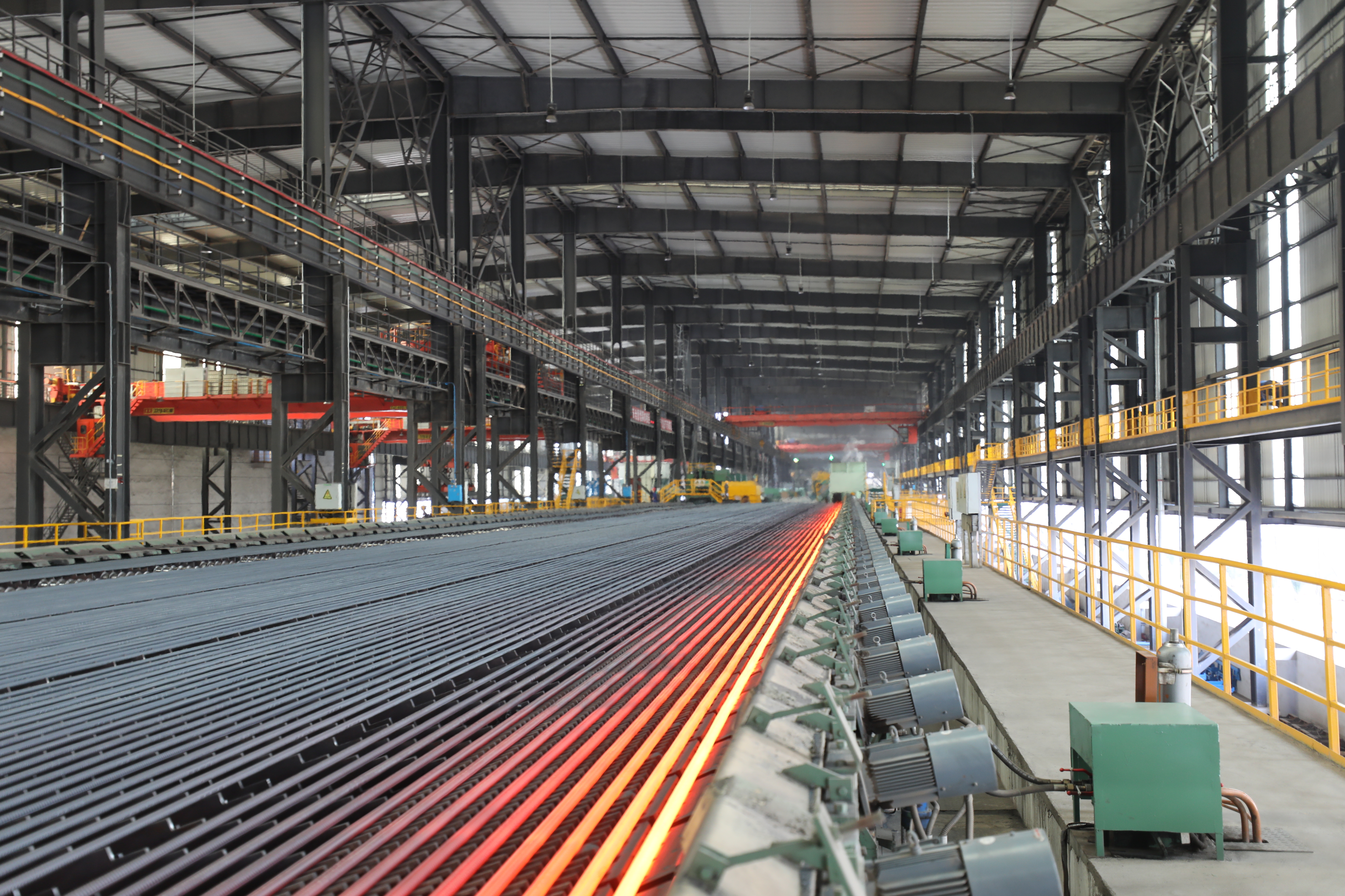 軋鋼廠現(xiàn)有生產(chǎn)設(shè)備,整體裝機(jī)水平在國內(nèi)同類軋機(jī)中處于領(lǐng)先地位,線材采用先進(jìn)工藝引進(jìn)意大利達(dá)涅利公司制造的精軋懸臂式 45°軋機(jī)八臺(tái)、懸臂式 45°減定徑三臺(tái)、吐絲機(jī)一套,德國西門子制造打捆裝置二套等;帶鋼廠采用自動(dòng)打包機(jī)及自動(dòng)噴號(hào)機(jī)械手等裝置,使全線實(shí)現(xiàn)自動(dòng)化控制,從而提高全線生產(chǎn)及管理水平。產(chǎn)品品種多,主導(dǎo)產(chǎn)品有棒材、線材、熱軋中寬帶鋼三大類,棒材可軋制牌號(hào)HRB400、HRB500、HRB400E、HRB500E、HRB600,Φ12mm、Φ14mm、Φ16mm、Φ18mm、Φ20mm、Φ22mm、Φ25mm、Φ28mm、Φ32mm、Φ36mm、Φ40mm、Φ50mm等12個(gè)規(guī)格鋼筋混凝土用熱軋帶肋鋼筋。線材可以采用普通熱軋工藝、超細(xì)晶粒軋制工藝生產(chǎn)規(guī)格Φ6mm、Φ8mm、Φ10mm、Φ12mm,牌號(hào)Q195、HPB300 及 HRB400、HRB500、HRB600、HRB400E、HRB500E 鋼筋混凝土用熱軋光圓鋼筋及鋼筋混凝土用熱軋帶肋鋼筋。帶鋼生產(chǎn)品種為碳素結(jié)構(gòu)鋼及優(yōu)質(zhì)碳素結(jié)構(gòu)鋼 Q195、 Q235、Q355、08A、10、20、45、45Mn 及特種鋼,生產(chǎn)厚度:1.2~12.7mm 、寬度:500~850mm 。全系列高性能抗震鋼筋,碳素結(jié)構(gòu)鋼及優(yōu)質(zhì)碳素結(jié)構(gòu)鋼、焊接用鋼、拉絲鋼等系列工業(yè)線材品種鋼等中寬帶鋼產(chǎn)品。